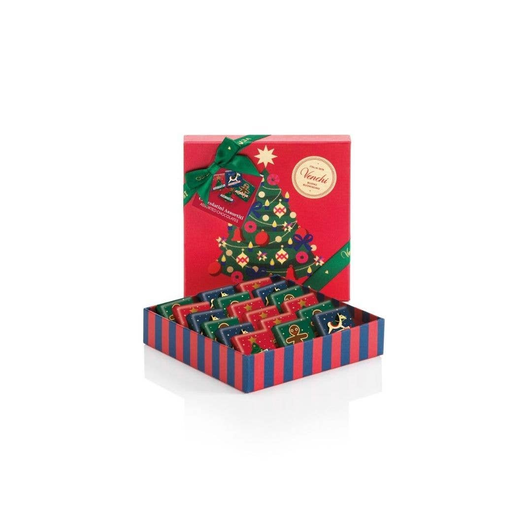 Venchi’s Assorted Christmas Chocolate Gift Box is a luxurious holiday offering that blends Italian craftsmanship with festive designs by illustrator Alice Bureau.