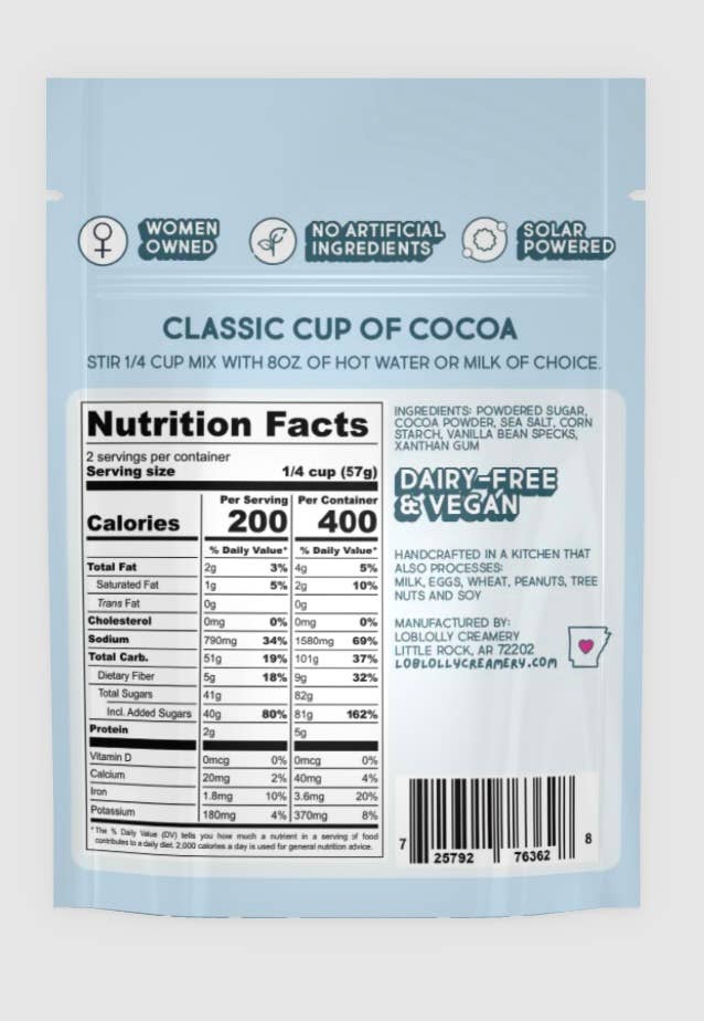 Made with simple ingredients and a rich chocolate taste, it’s perfect for home or office. Simply add water or milk. This mix makes two 8 fl oz servings of creamy, rich hot cocoa that's ready in minutes.