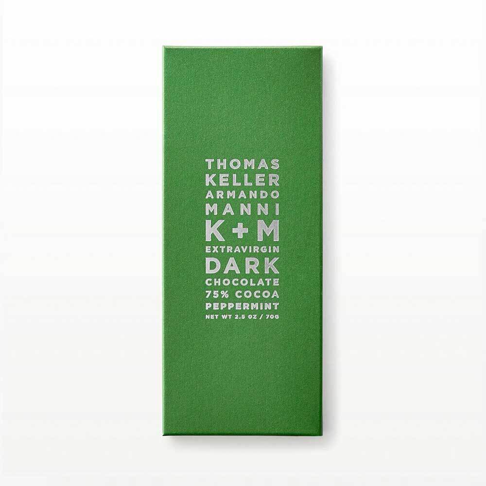 The K+M Extra virgin Dark Chocolate Peppermint combines the intensely rich flavors of their Ecuadorian single-estate dark chocolate with the refreshing flavor of natural peppermint essential oil.