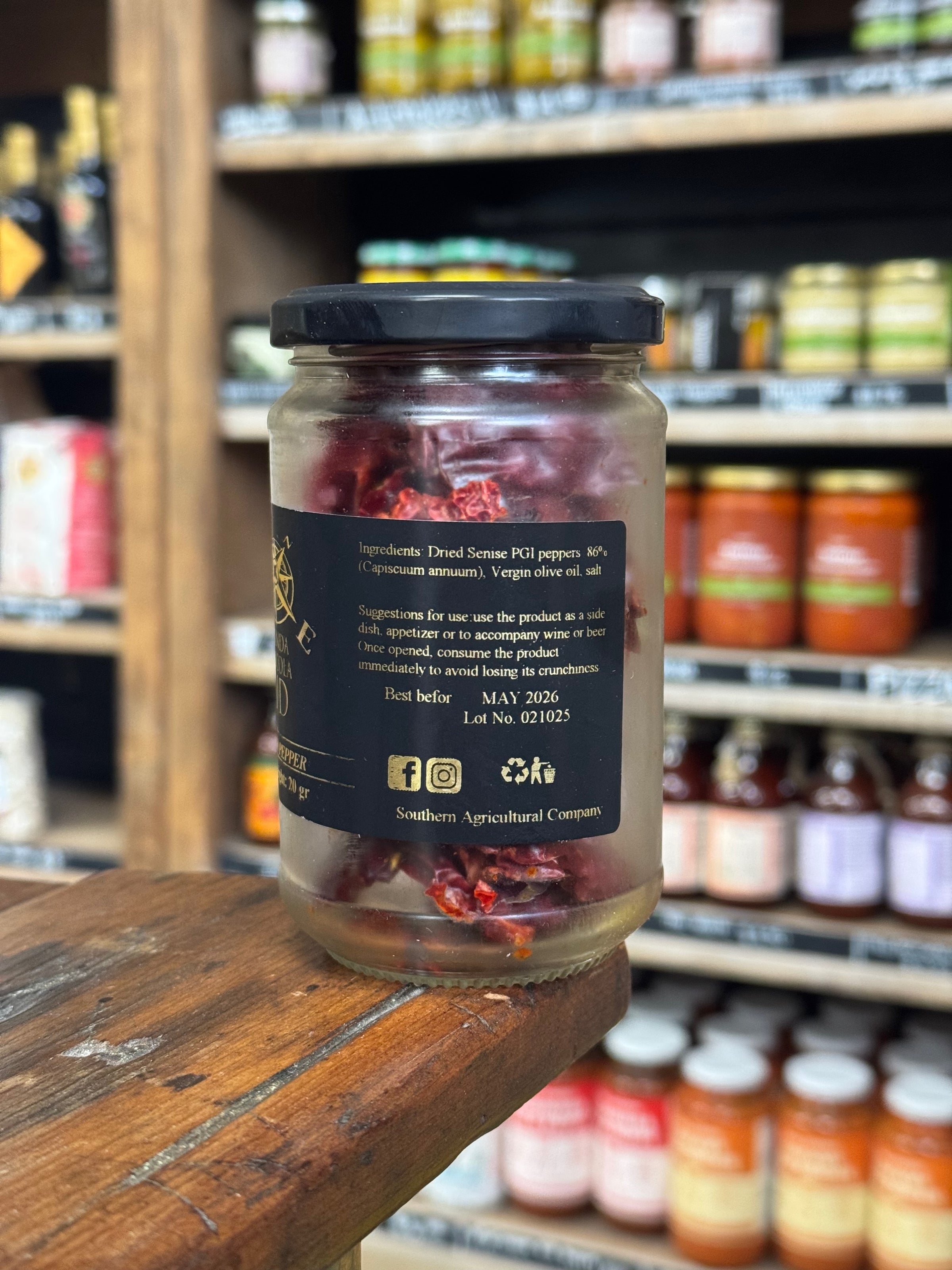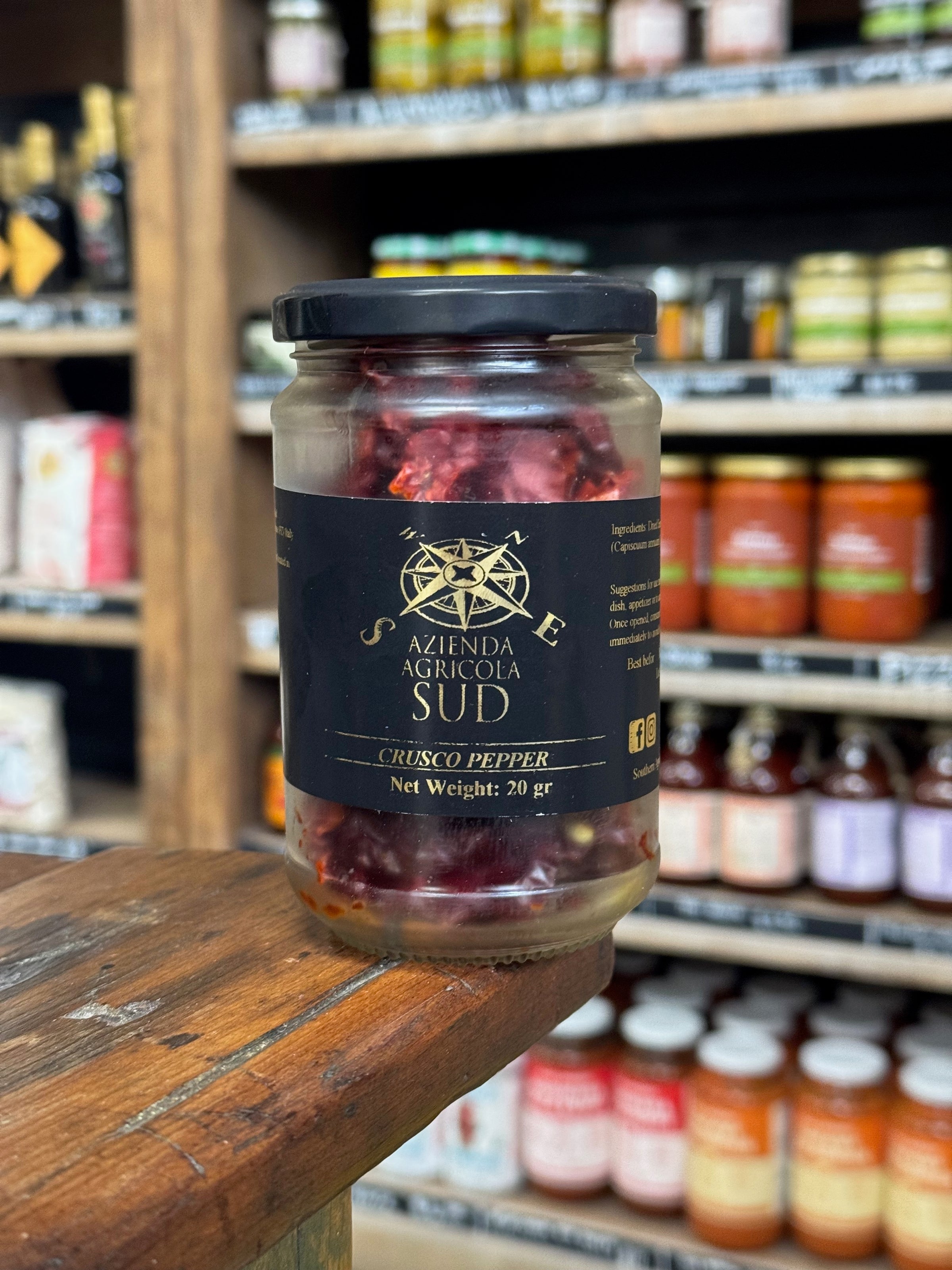 Cruscho, meaning crunchy, are a typical recipe of Lucanian cuisine. They are a particular type of sweet pepper with a low water content, typical of Senise, a municipality in Basilicata, which obtained the IGP (Protected Geographical Indication) mark in 1996.