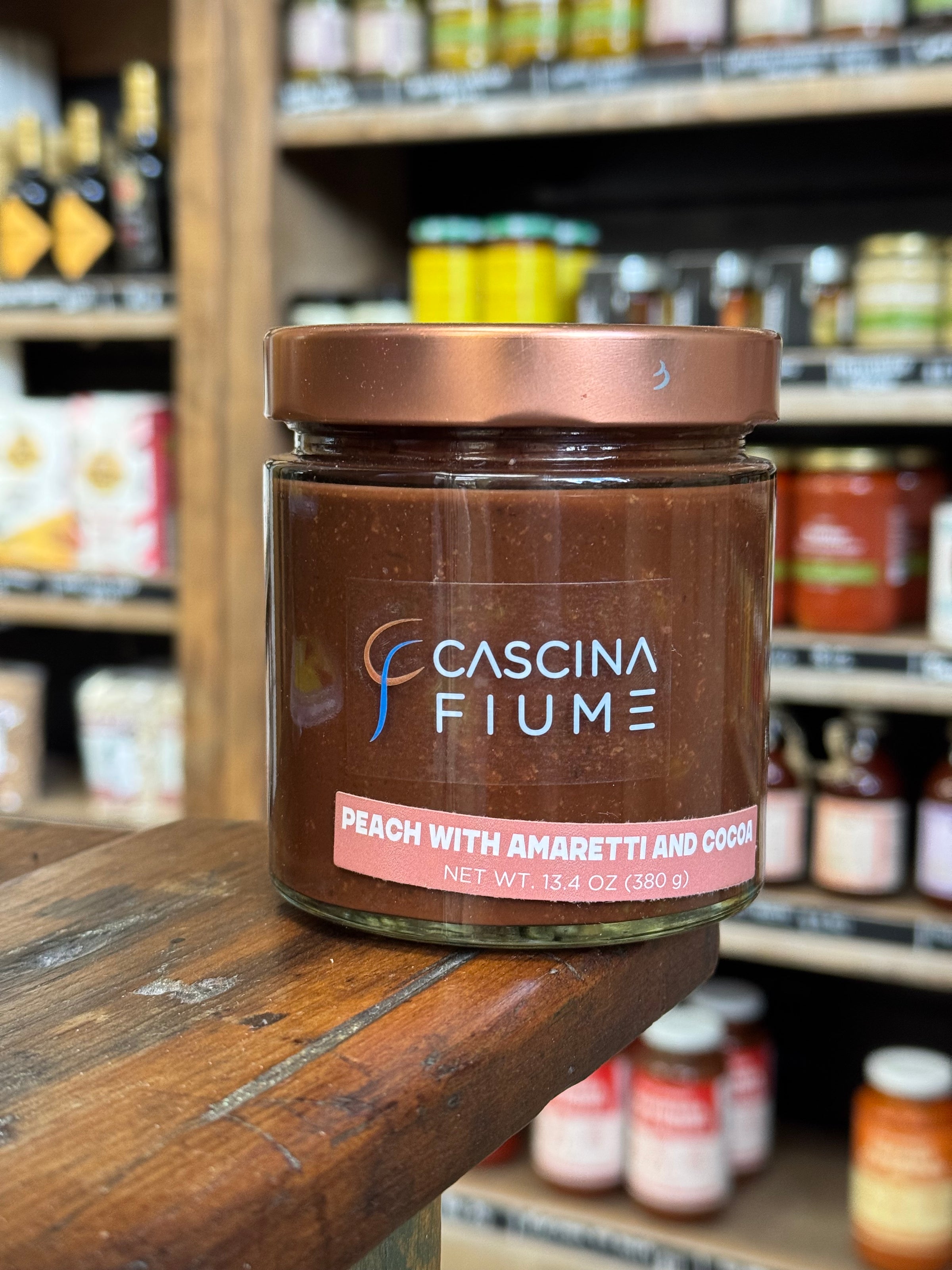 Ingredients: Peaches, sugar, amaretti cookies (sugar, apricot kernels, egg white, lactose, flavor), cocoa and lemon juice.